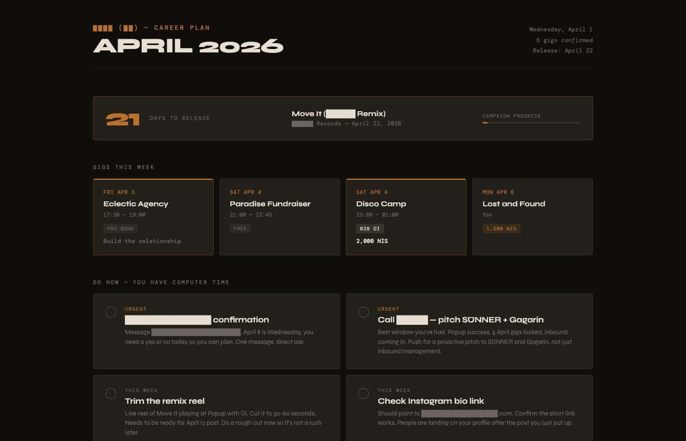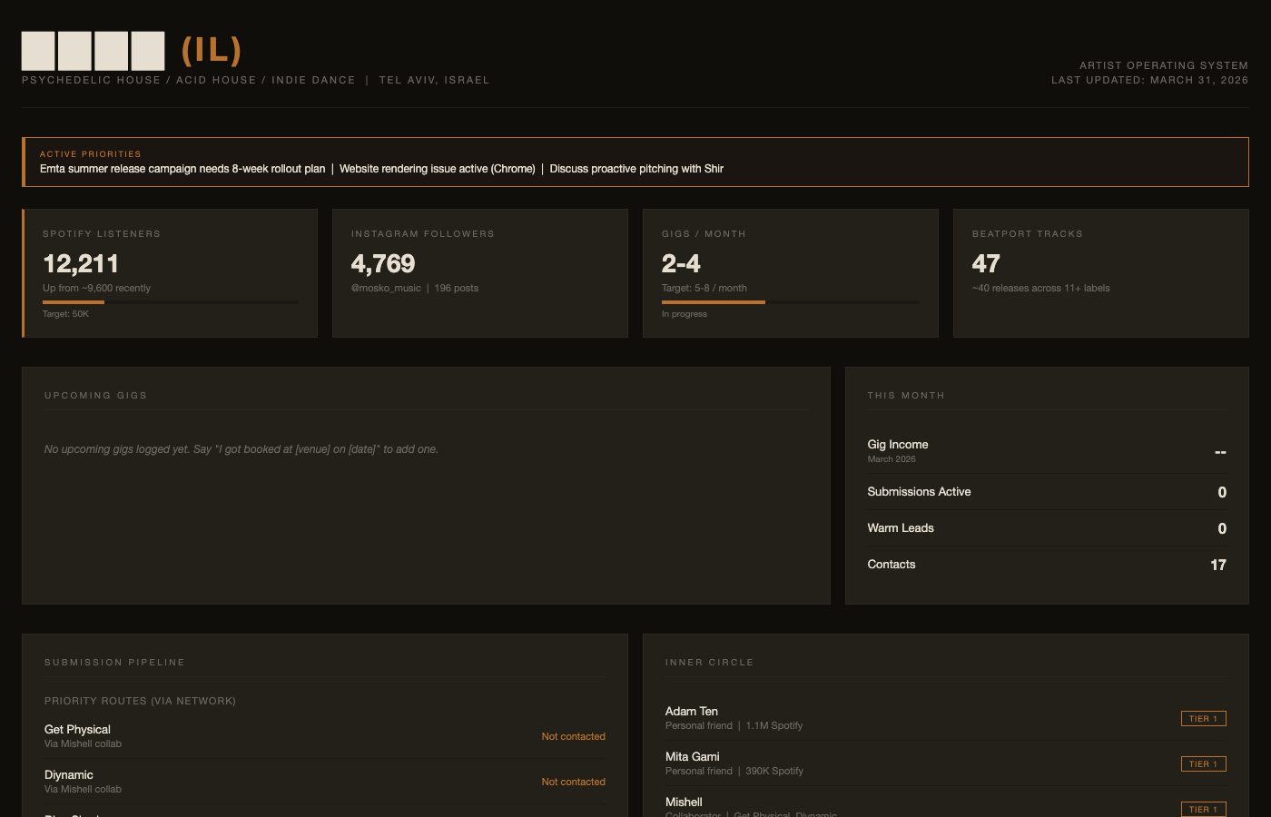 I'm a working DJ and producer based in the Middle East. I built these AI systems for my own career first, to handle outreach, content planning, press kits, and all the stuff that was eating my time instead of making music.