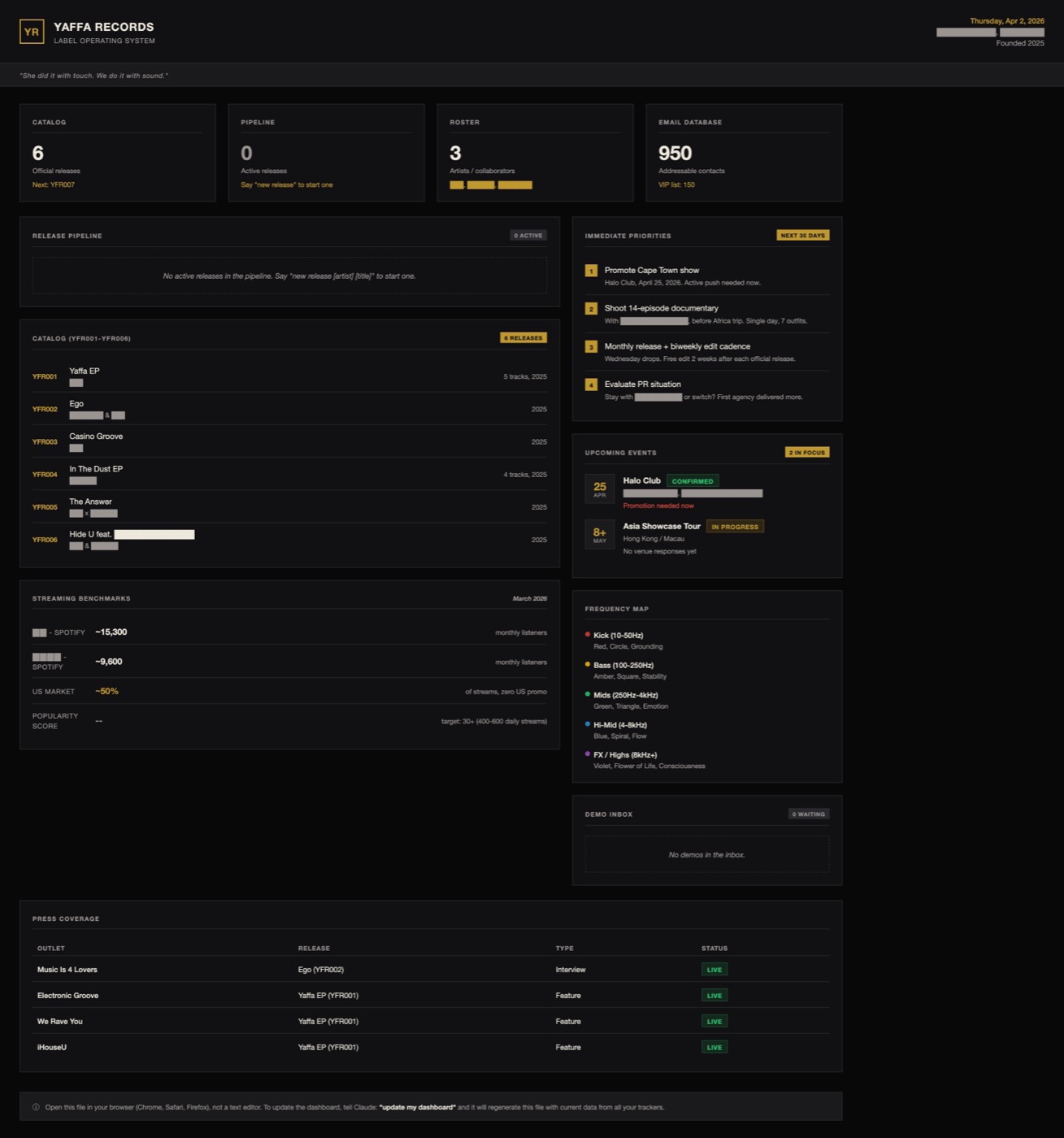 This isn't theory from someone who read about the music industry online. It's the exact system I use every week to run my career and my label.